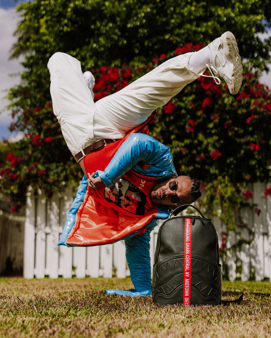 Dimensions: 18" x 6" x 11.5" • Front zipper pocket • Side pockets • Zippered Stash pocket • Separate velour sunglass compartment • Ergonomic mesh back padding • Adjustable Straps for custom sizing • Gold zippers with metal hardware • Metal "Sprayground Authentic" badge • Slide through back sleeve connects to carry-on luggage to free your hands