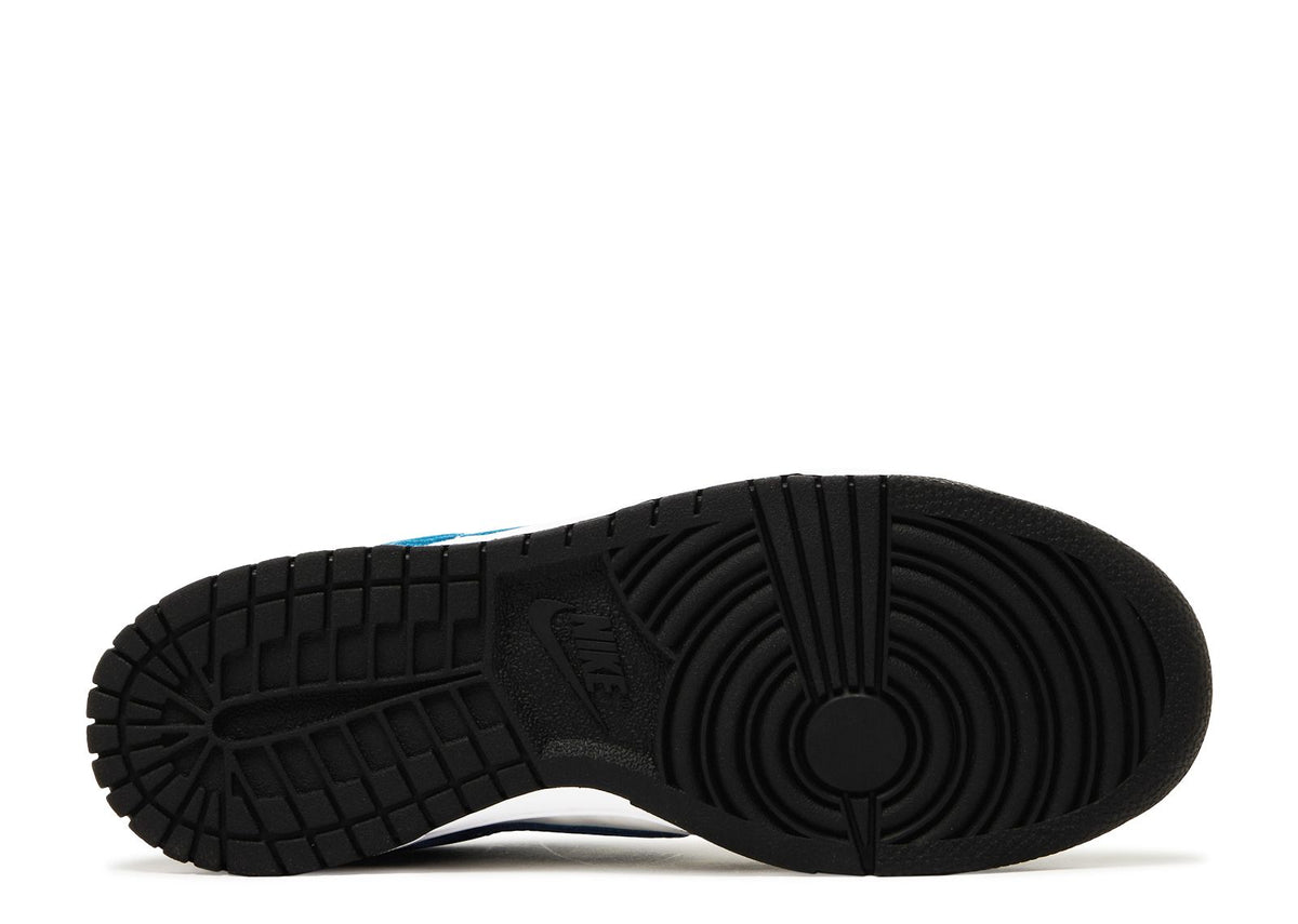 Crafted for older children, the Nike Dunk Low GS ‘Industrial Blue’ delivers an upper in white with a contrasting black forefoot overlay. The iconic Swoosh, the overlay on the heel, and the branded back tab featuring the Nike logo appear in vibrant blue. The sneaker rests on a robust cupsole with white sidewalls atop a resilient black rubber outsole. Strategically placed perforations on the toe box and a padded low-cut collar enhance ventilation and fit.
