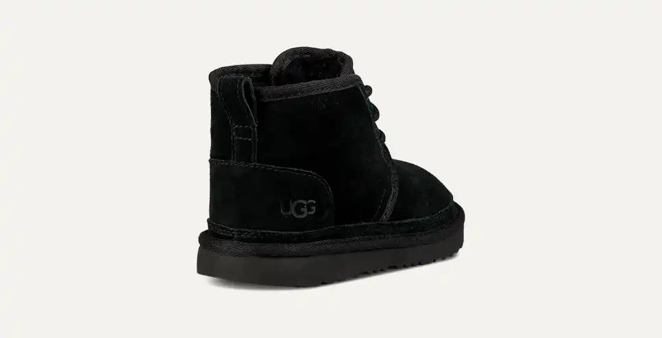 Warm and soft, our best-selling kids' Neumel II Boot features an UGGplush™ wool lining to keep your little one cozy. This suede chukka boot is built to move how kids do, with a rocker-bottom shape for a barefoot feel and our ultra-lightweight outsole. Pair our kids' chukka boots with our adult sizes to extend the style to the whole family. This kids' lace up boot is available in a range of dark and light neutral colors.
